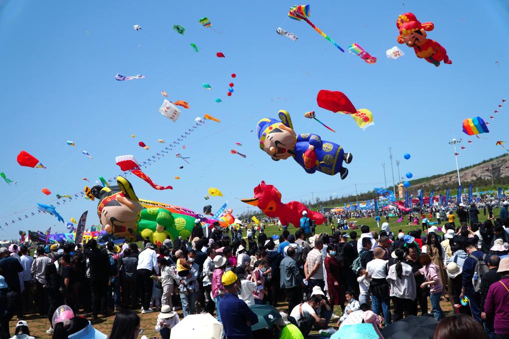 4月20日,第41届潍坊国际风筝会万人风筝放飞活动在山东省潍坊市世界风筝公园举行。