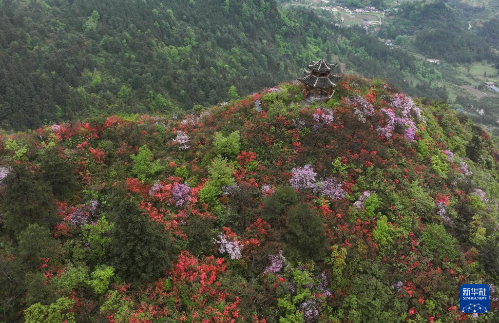 4月21日在贵州省丹寨县龙泉山拍摄的杜鹃花(无人机照片)。