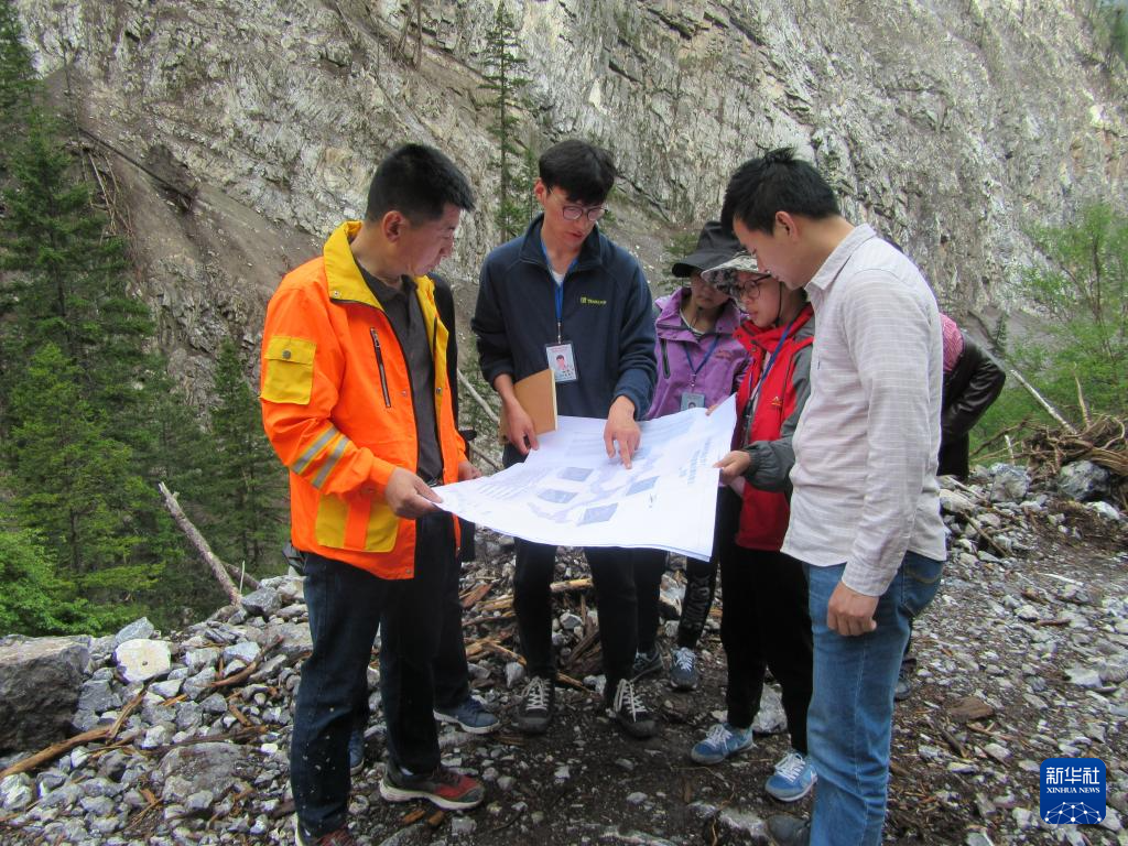 2018年,裴向军(左一)率团队在九寨沟做震后地质灾害详查(资料照片)。。