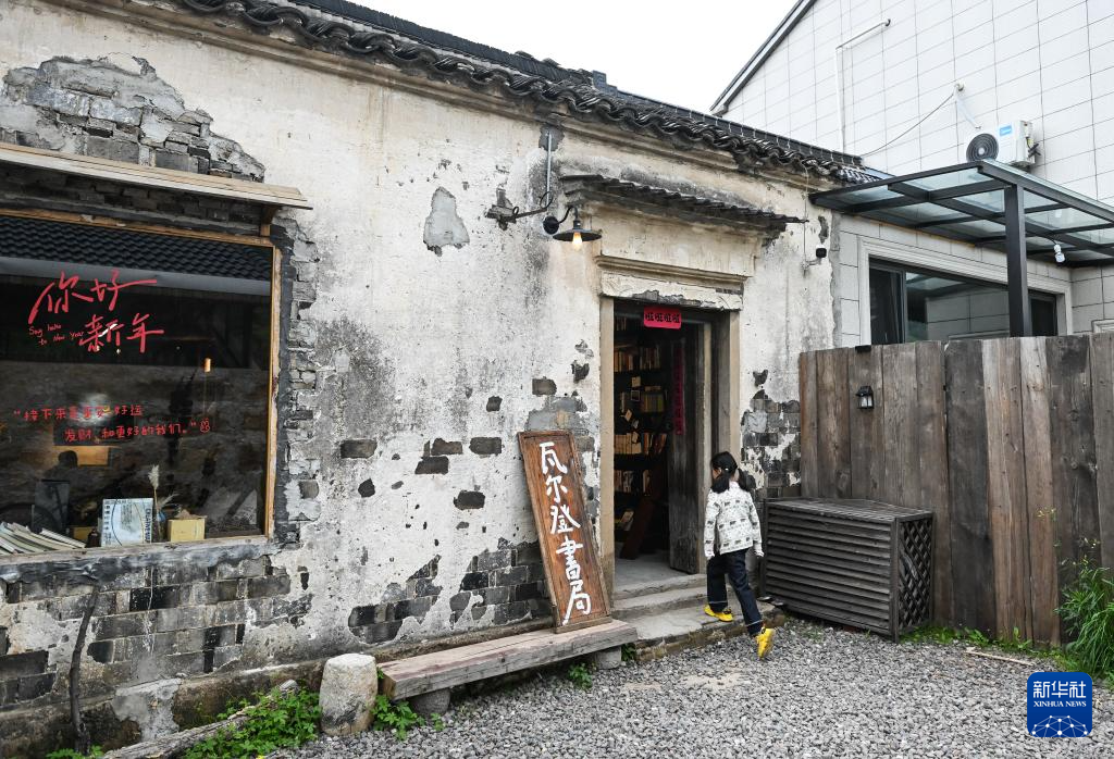 4月21日,来自杭州的游客在溧阳市石塘村瓦尔登书局读书。
