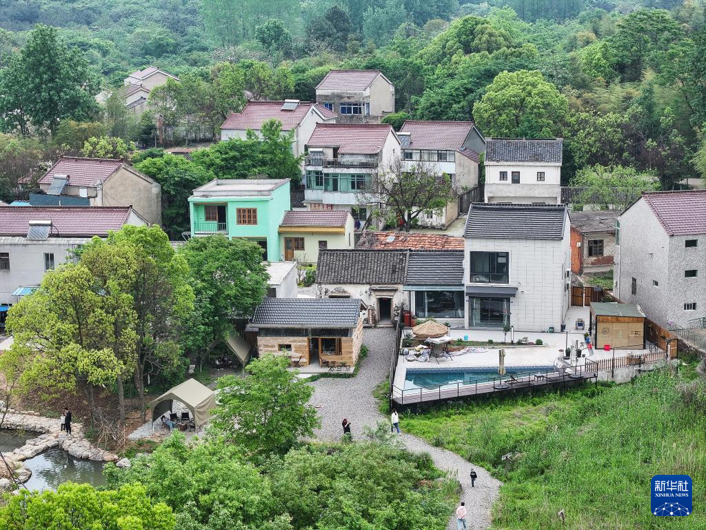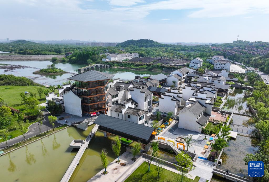 这是4月21日拍摄的溧阳市石塘村瓦尔登书局及周边环境(无人机照片)。