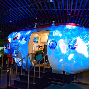 4月22日,鄂尔多斯市康巴什区实验小学学生在研学课程中进入深潜器模型体验海洋探险。