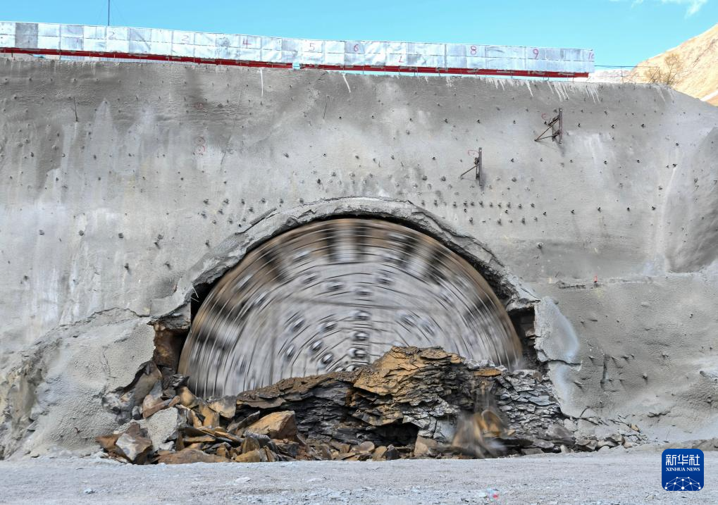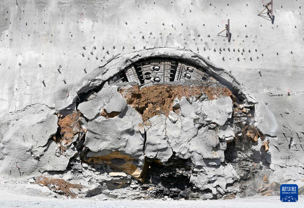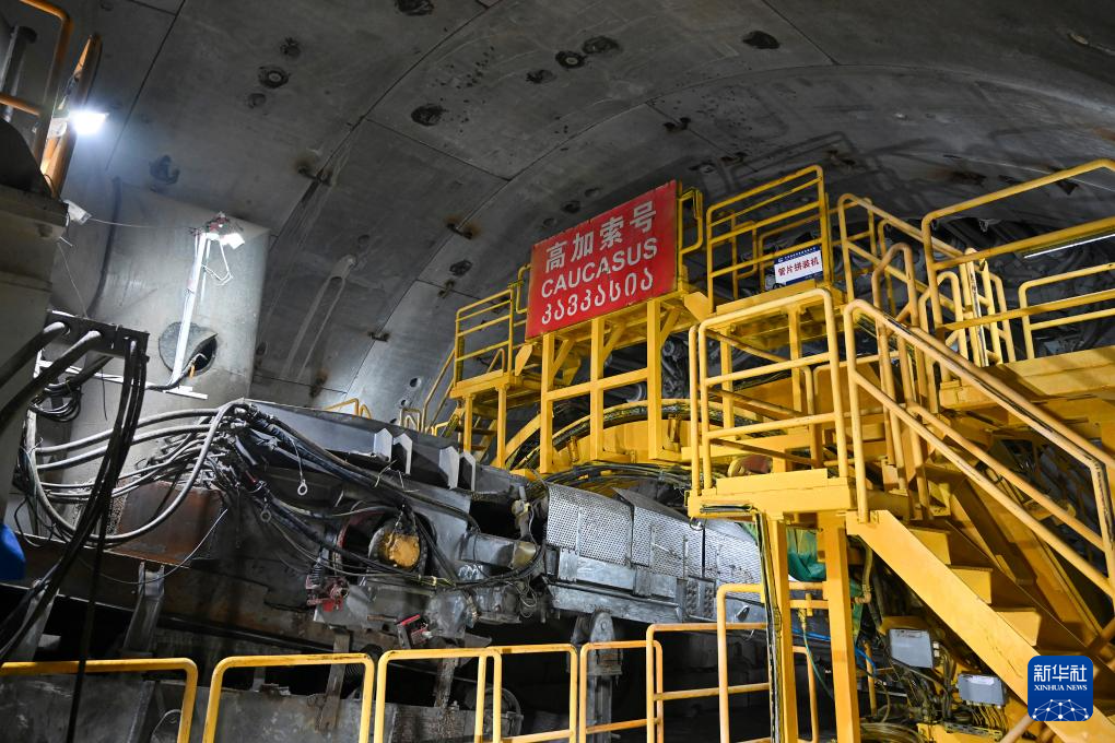 这是4月23日拍摄的格鲁吉亚古多里隧道工程建设采用的全断面硬岩掘进机“高加索号”。