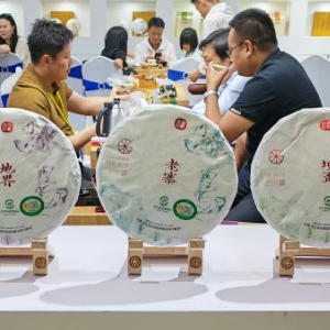 这是4月19日在第十六届中国云南普洱茶国际博览交易会上拍摄的展品。