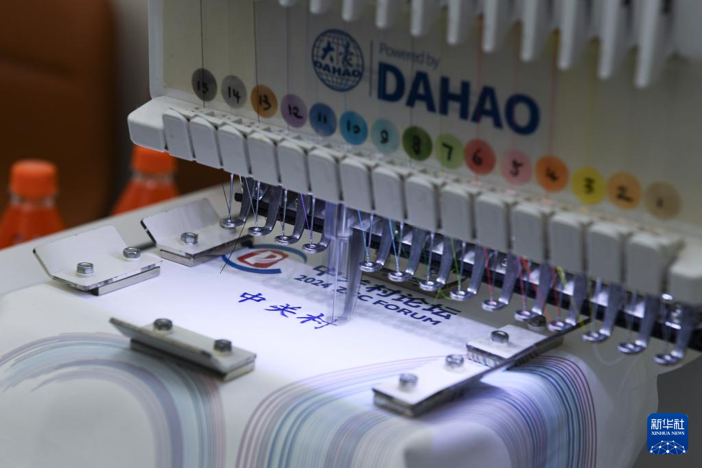 4月24日拍摄的中关村国际创新中心内的云智能刺绣机体验项目。
