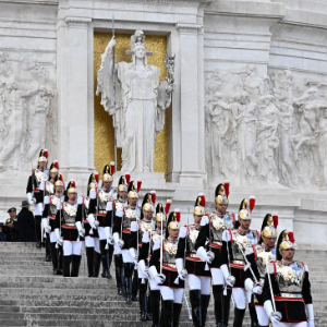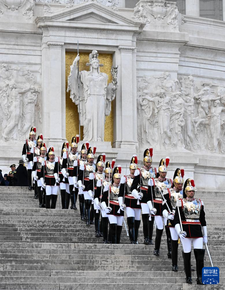 4月25日,在意大利罗马,总统卫队士兵在纪念活动上列队。
