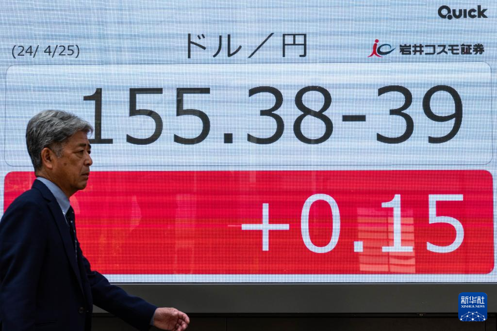 24日晚,日本东京外汇市场日元对美元汇率跌破1美元兑155日元水平,这是自1990年6月以来日元对美元汇率首次触及该水平。