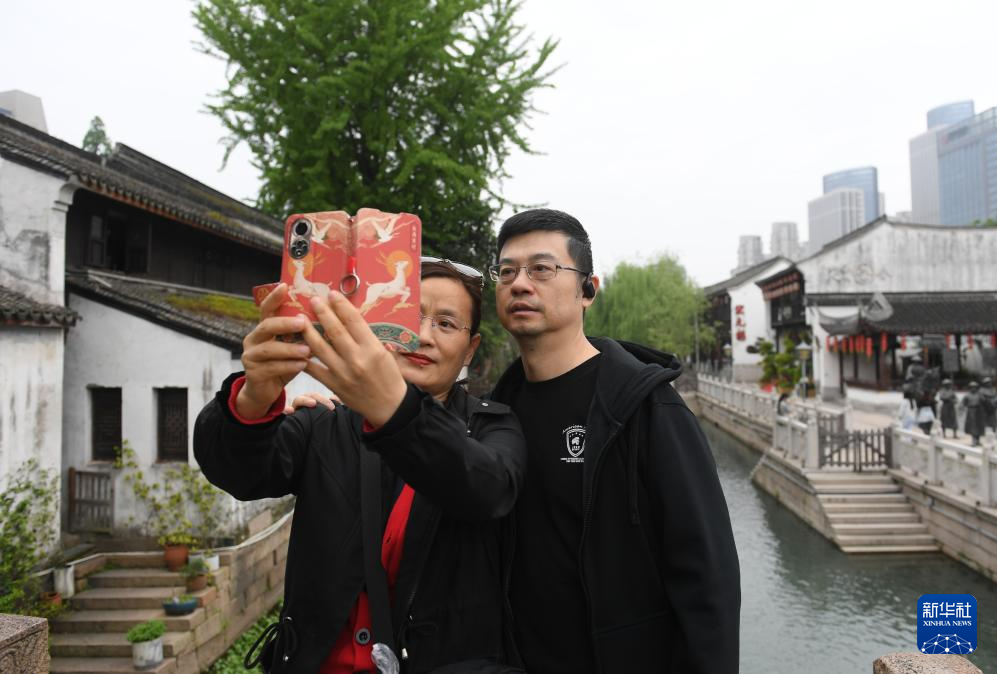 一名游客在小西街永安桥上拍摄(4月21日摄)。