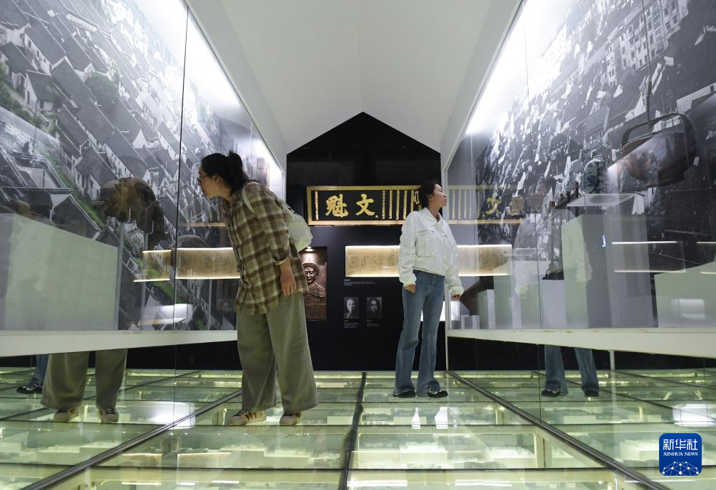 前来研学的青少年在小西街的西岸当代美术馆观看老街历史照片(2023年7月19日摄)。