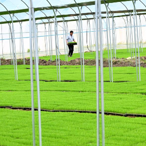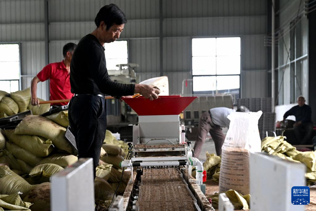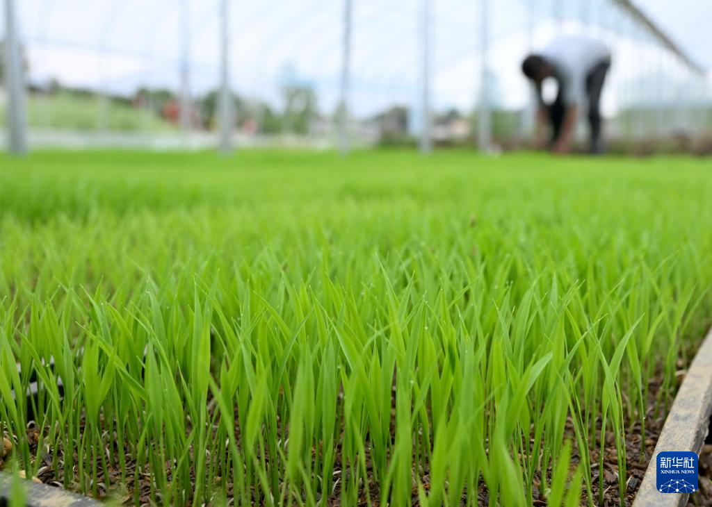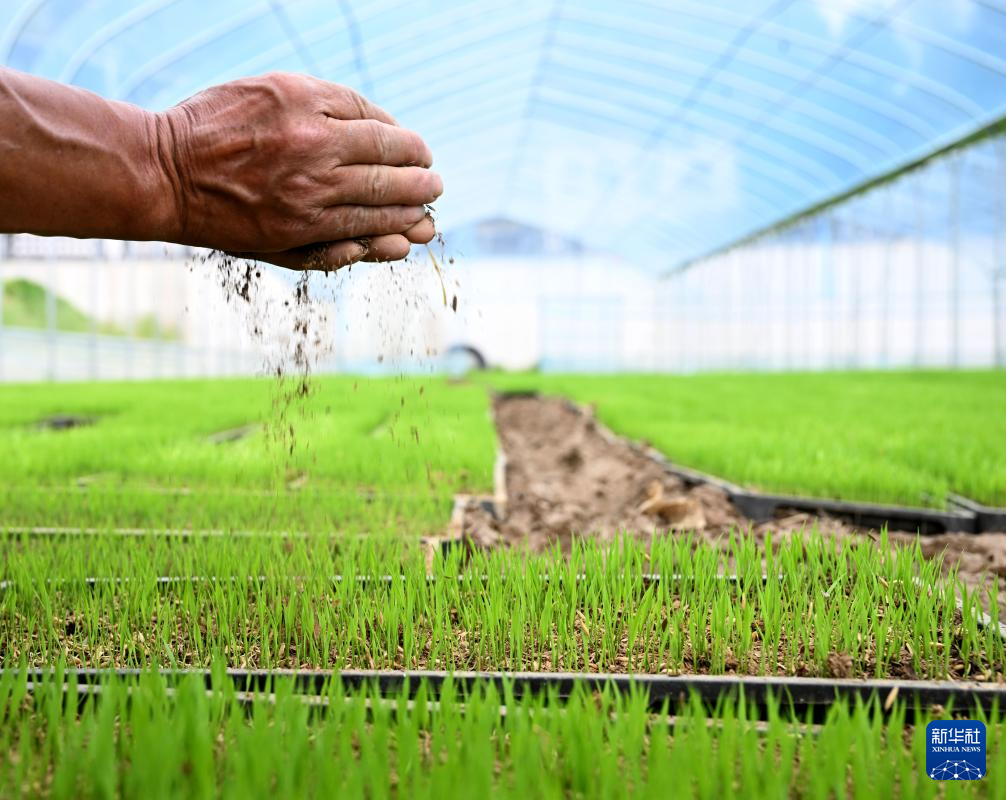 暮春时节,安徽省安庆市岳西县温泉镇农民抢抓农时进行水稻育秧工作,为下一步水稻插秧做准备。