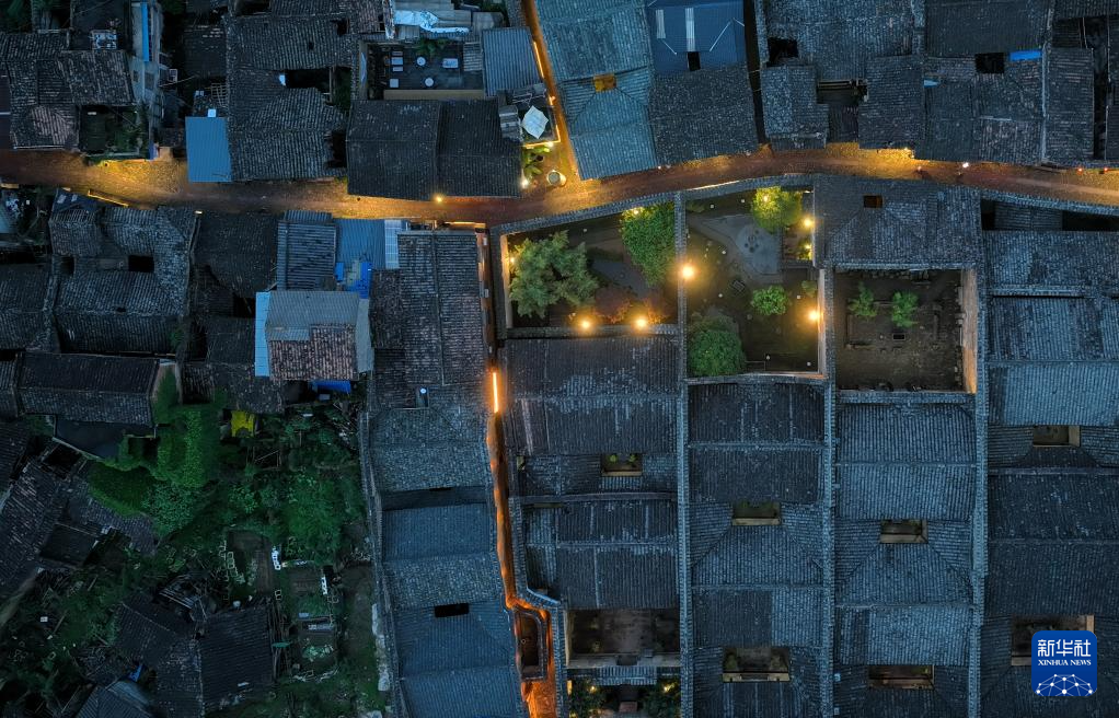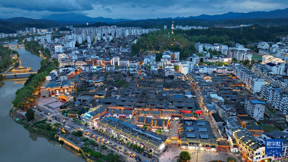 泰宁县尚书巷历史文化街区夜景(4月19日摄,无人机照片)。