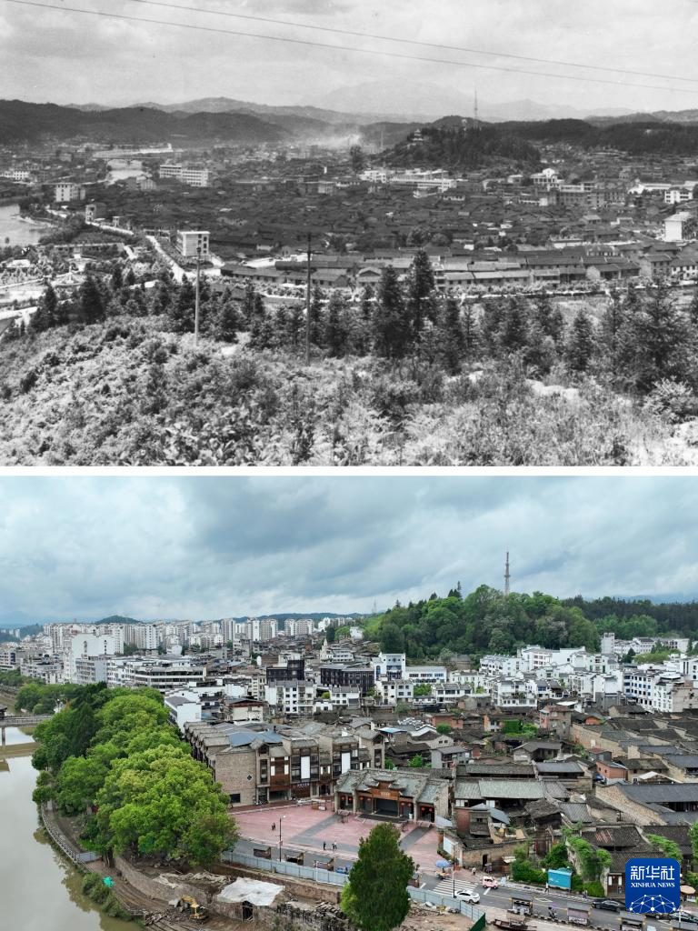拼版照片:上图为泰宁县古城核心区(资料照片);下图为同一地点拍摄的泰宁县古城核心区(4月20日新华社记者魏培全摄,无人机照片)。