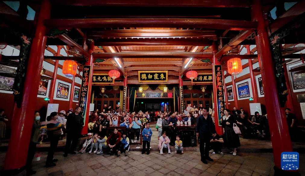 在泰宁县尚书巷历史文化街区梅林戏展示中心,人们等待观看梅林戏演出(4月19日摄)。