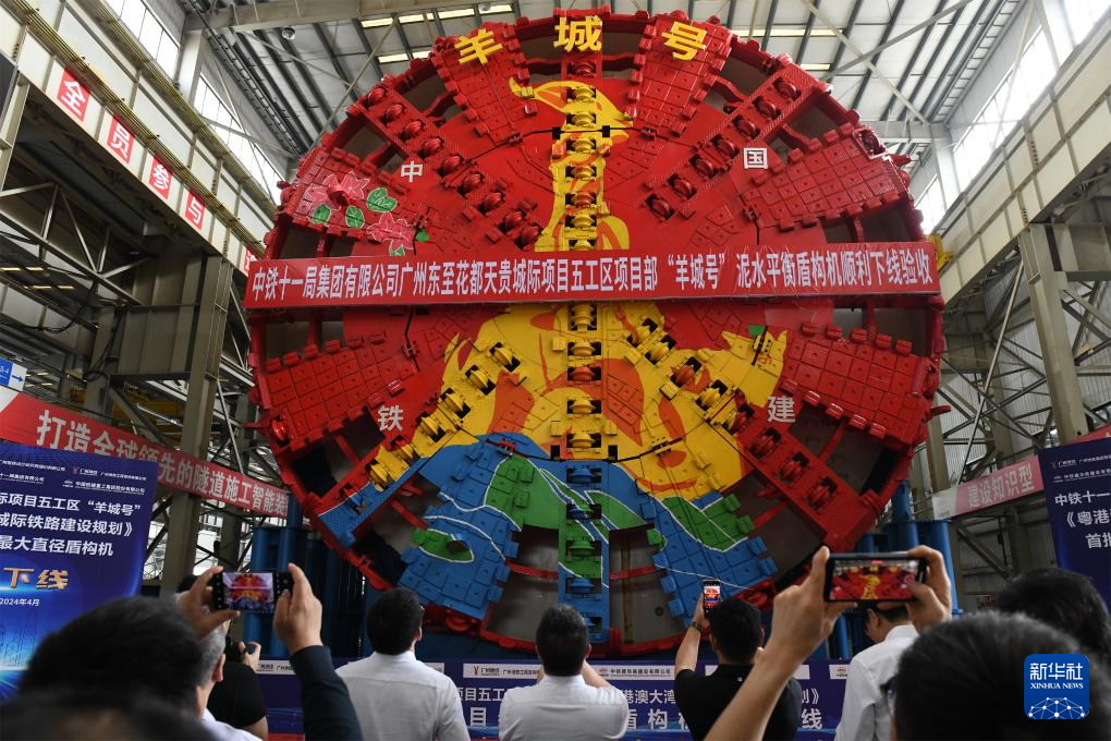 4月26日,由中铁十一局和铁建重工共同研制的超大直径泥水平衡盾构机“羊城号”,在湖南长沙成功下线交付。该盾构机最大开挖直径13.56米,总重3350吨,将担负广州东至花都天贵城际的施工任务,其成功下线标志着粤港澳大湾区城际铁路建设首批项目中最大直径盾构机取得生产研发新突破。