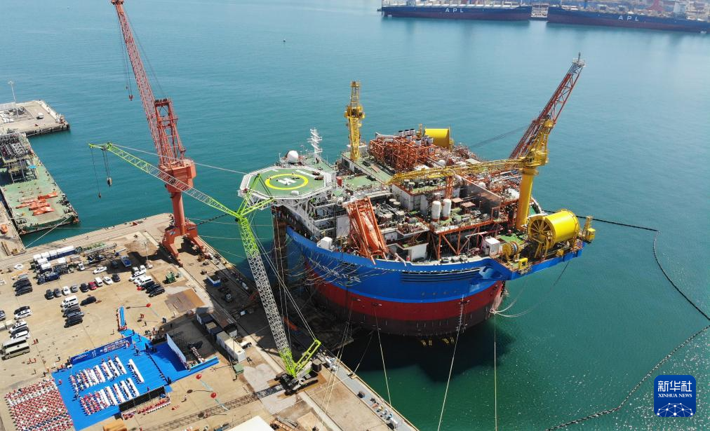 靠泊在青岛海洋工程高新装备制造基地舾装码头的“海葵一号”(无人机照片,4月26日摄)。
