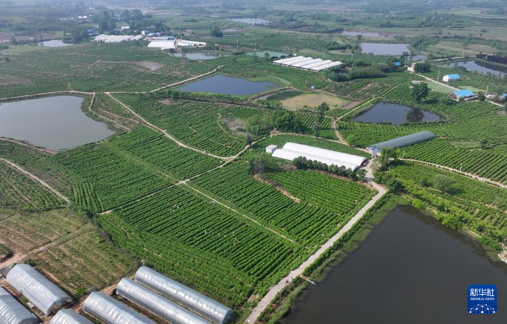 4月26日拍摄的肥西县山南镇金牛蚕桑农民专业合作社桑园种植基地(无人机照片)。