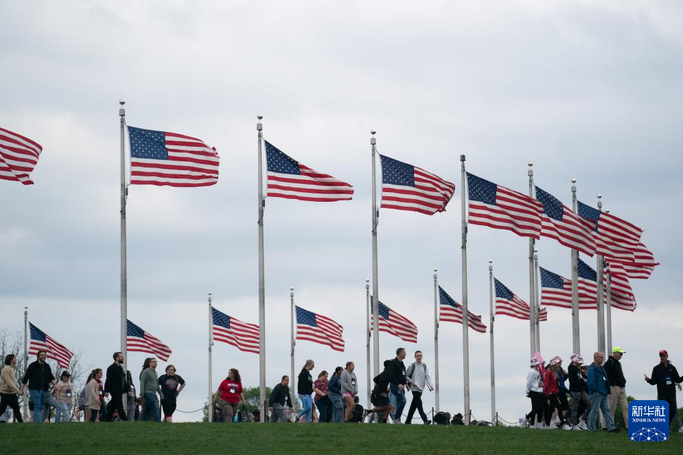 4月25日,游客在美国首都华盛顿的国家广场游览。