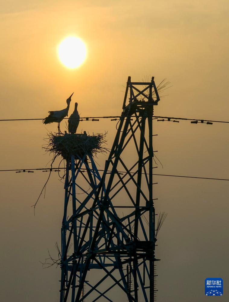 近年来,随着江苏省兴化市生态环境不断改善,兴化市境内的东方白鹳数量明显增长。目前正值候鸟繁育季,为保障电网输电线路稳定运行和东方白鹳家园安全,电力工作人员通过在现有鸟巢上安装护鸟板、搭建人工鸟巢、开展“爱鸟特巡”等一系列爱鸟护线措施,保障鸟类与供电设备和谐共存。