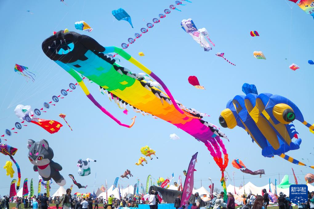 4月20日,第41届潍坊国际风筝会万人风筝放飞活动在山东省潍坊市世界风筝公园举行。