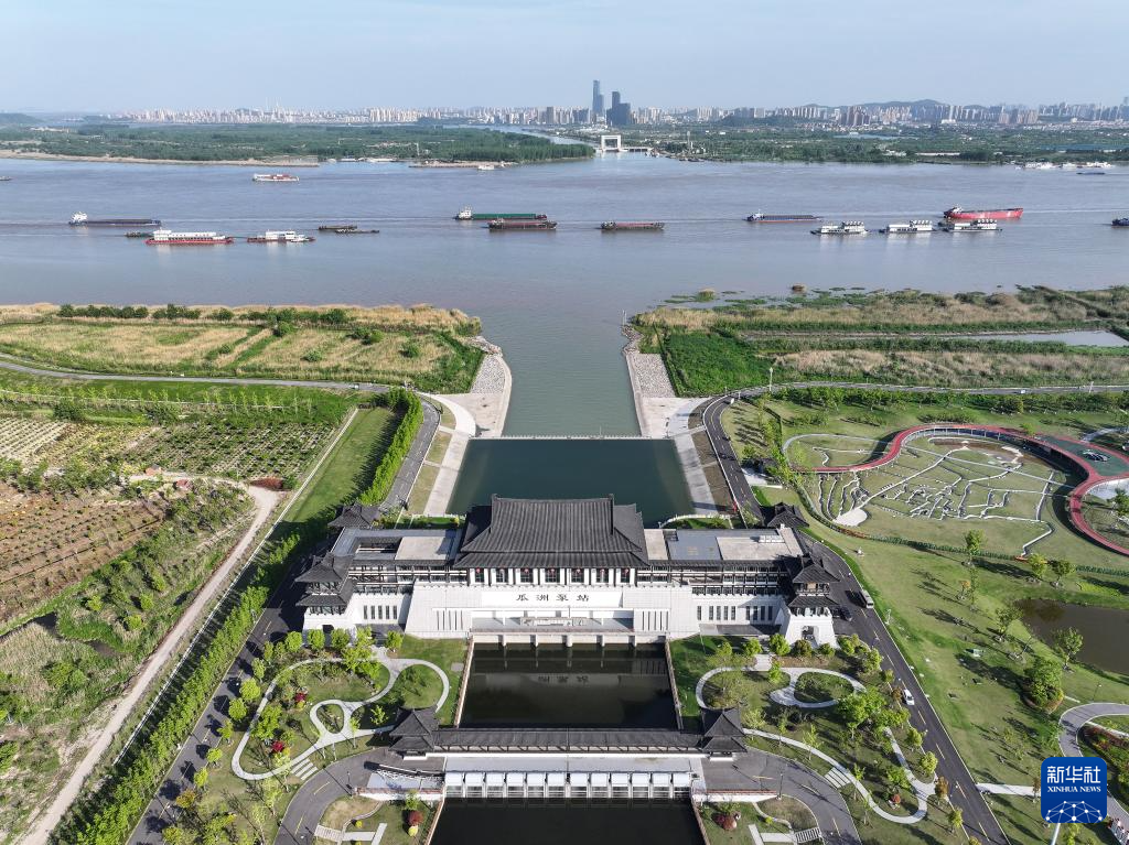位于扬州邗江区瓜洲镇的瓜洲泵站(无人机照片,4月24日摄)。