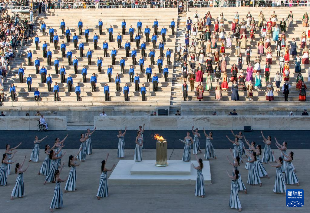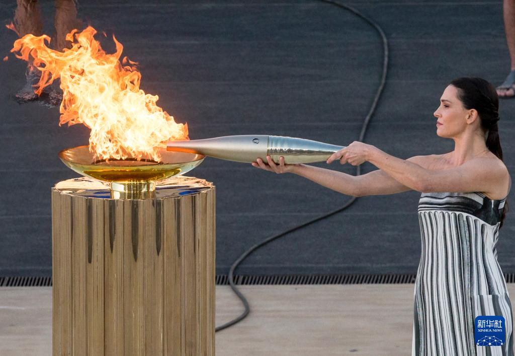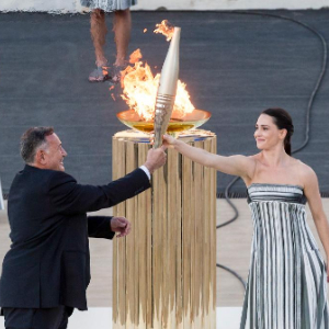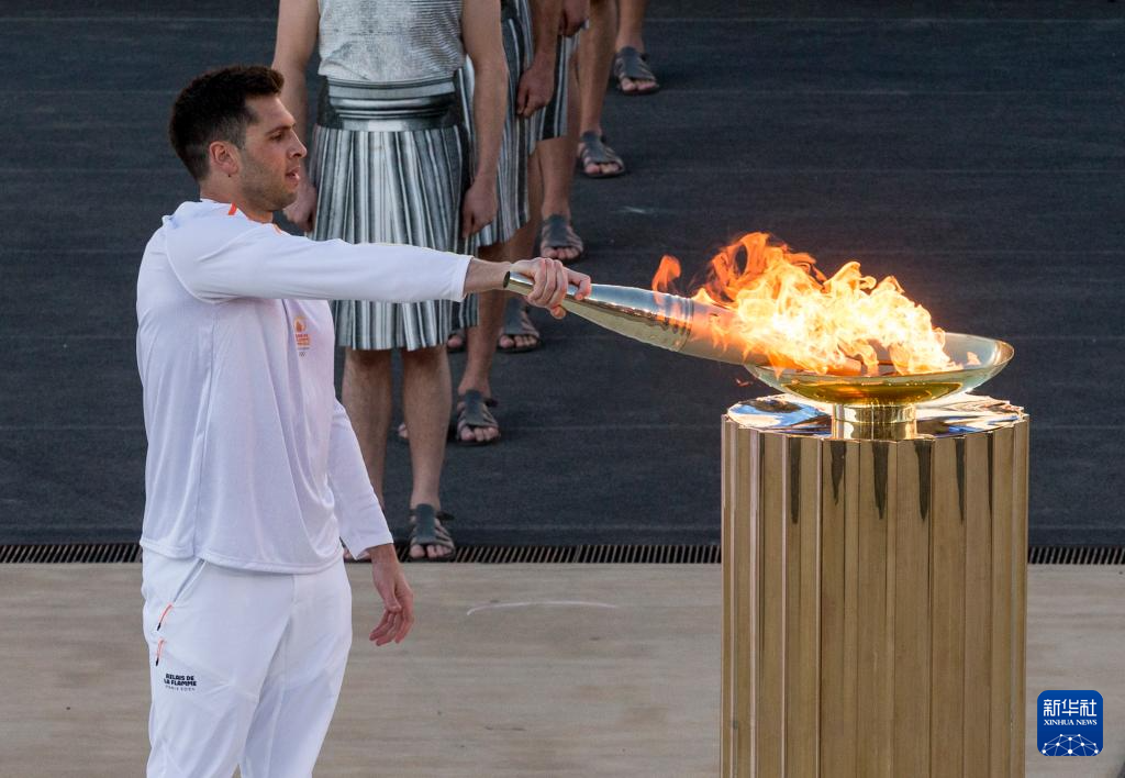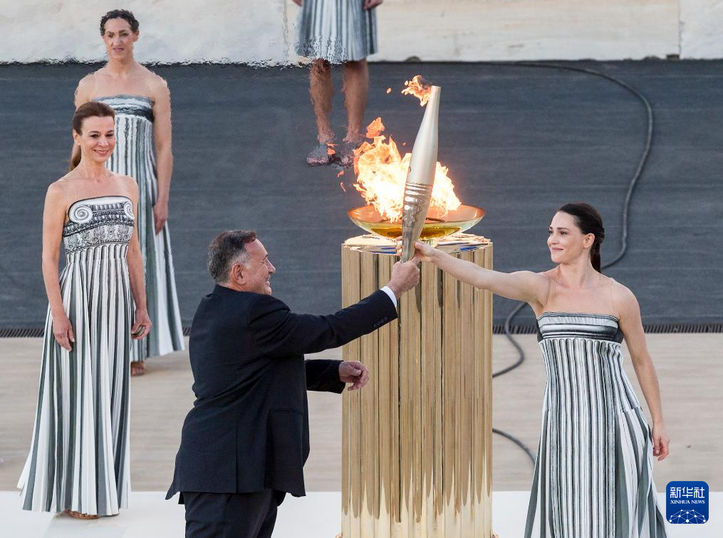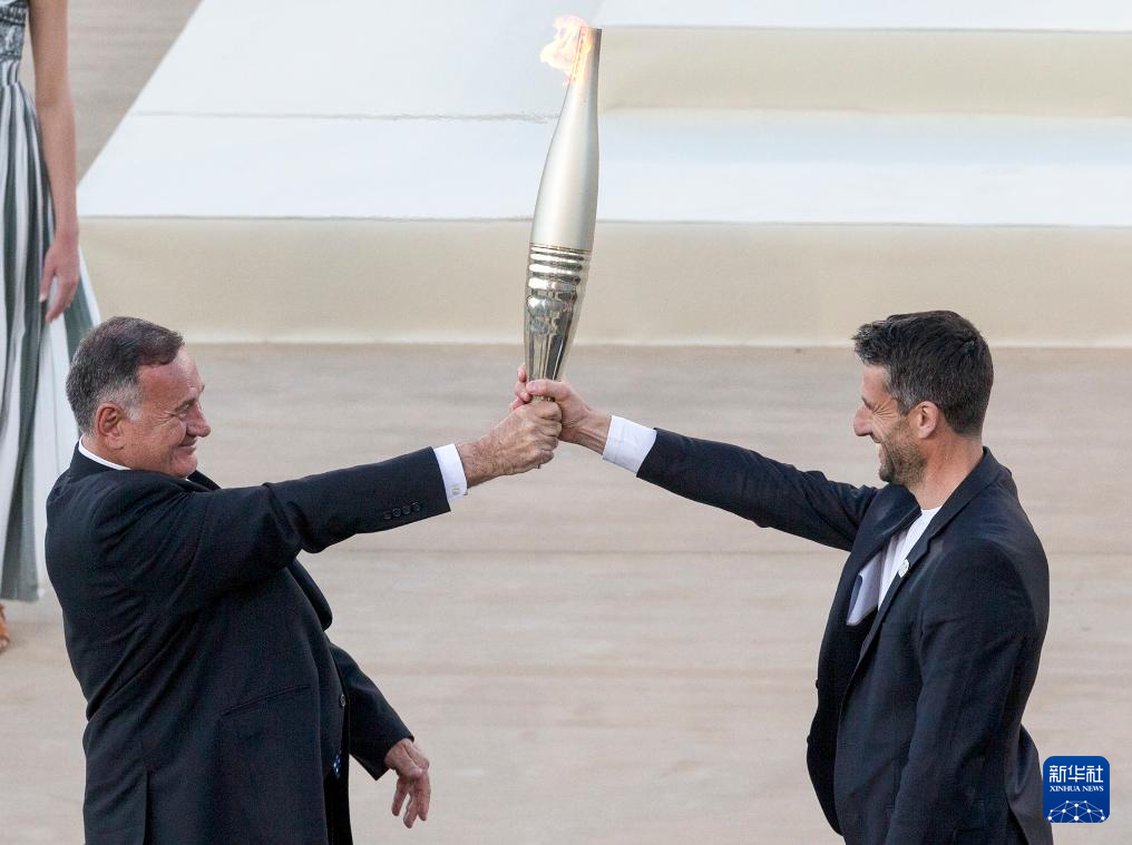 当日,巴黎奥运会火种在希腊首都雅典帕纳辛奈科体育场,由希腊奥委会正式交给巴黎奥组委,巴黎奥组委主席托尼·埃斯坦盖从希腊奥委会主席卡普拉洛斯手中接过奥运火炬。