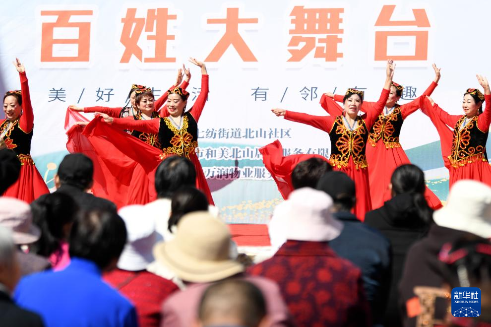 4月27日,来自乌鲁木齐市水磨沟区七纺街道北山社区新时代文明实践站的志愿服务队为居民送上文艺演出。