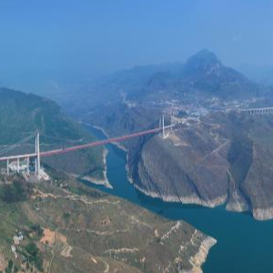 牂牁江大桥位于贵州省晴隆县和普安县交界处,大桥全长1849米,主跨1080米,桥面至江面最高距离380米。
