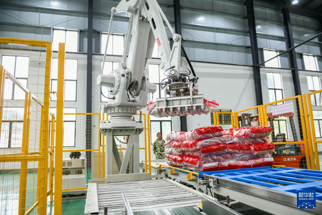 4月29日,技术人员在贵州省黔东南苗族侗族自治州岑巩县一家制种公司生产车间包装稻种。