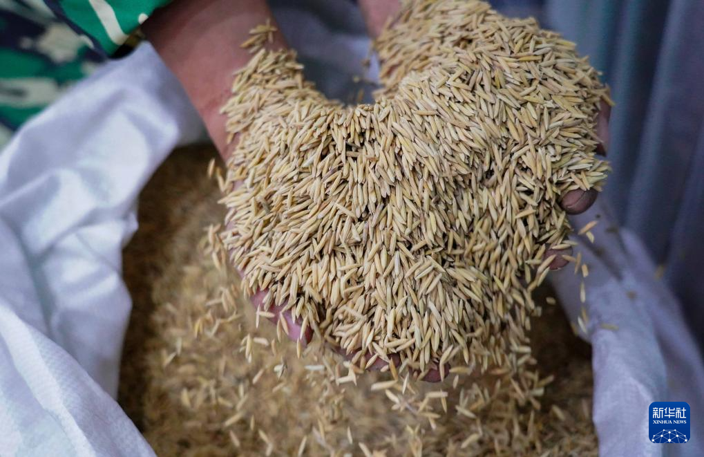 4月29日,工人在贵州省黔东南苗族侗族自治州岑巩县一家制种公司生产车间加工稻种。