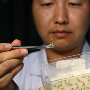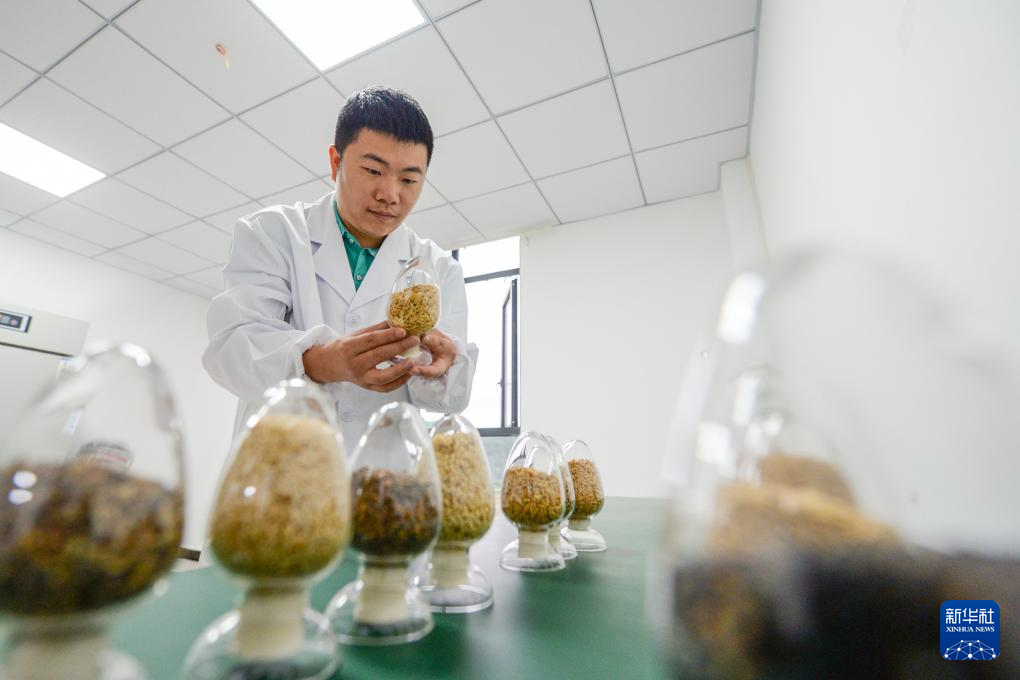 4月29日,技术人员在贵州省黔东南苗族侗族自治州岑巩县一家制种公司的实验室内检测种子发芽率。
