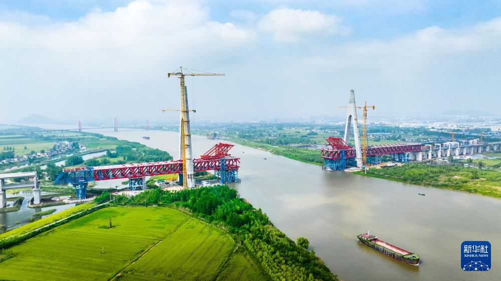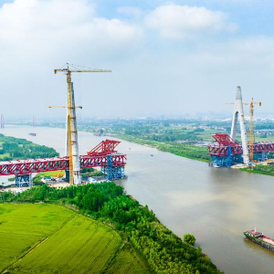 “五一”国际劳动节前,由中铁四局承建的位于安徽省马鞍山市当涂县的巢马铁路马鞍山长江公铁大桥副汊航道桥施工现场一派繁忙,施工人员奋战在建设一线,确保重点工程建设进展顺利。