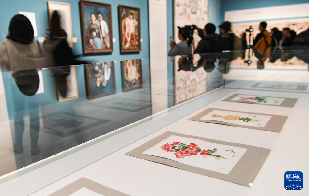 在中国工艺美术馆展出的常沙娜花卉写生作品(4月29日摄)。