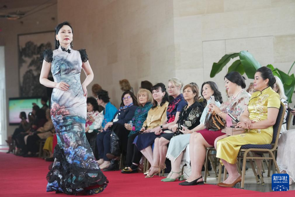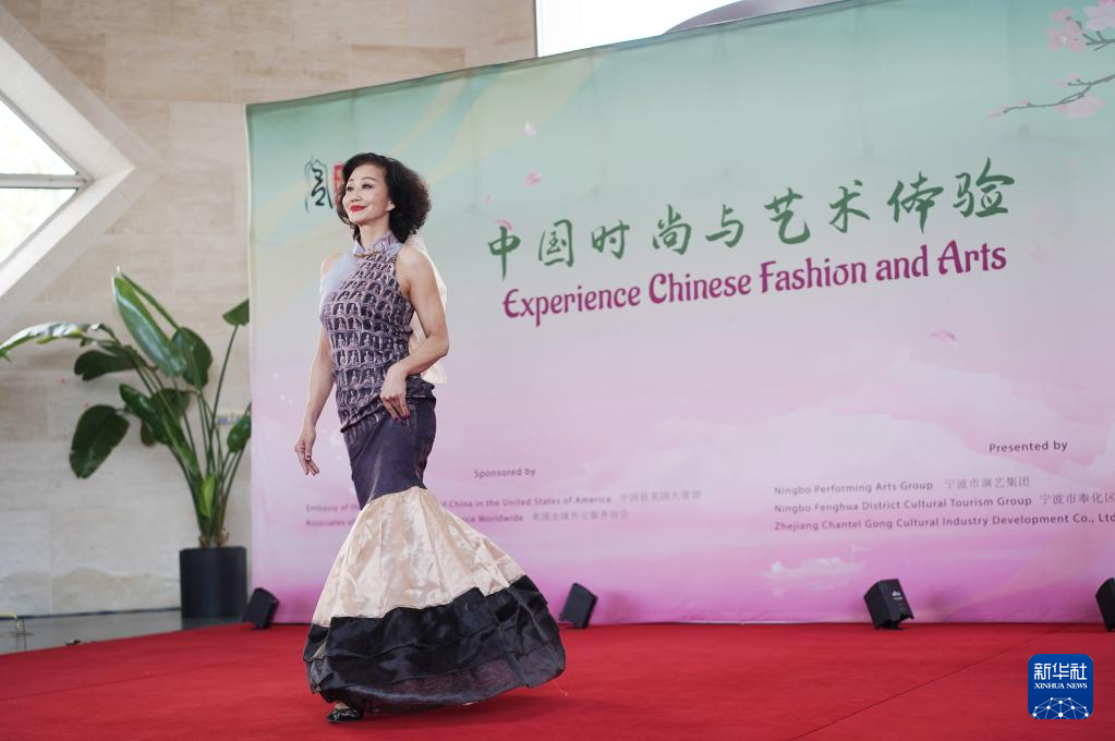4月26日,在美国华盛顿,模特在中国驻美国大使馆“中国时尚与艺术体验”活动上展示服装。