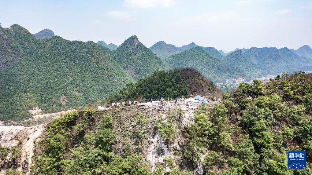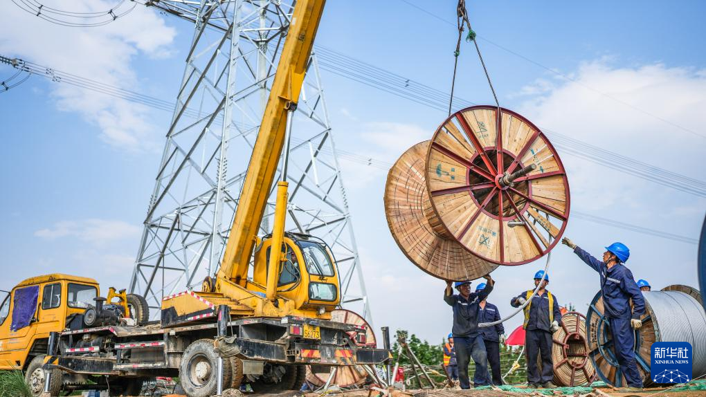南方电网贵州送变电公司的工人在镇宁布依族苗族自治县马厂镇施工(4月29日摄)。
