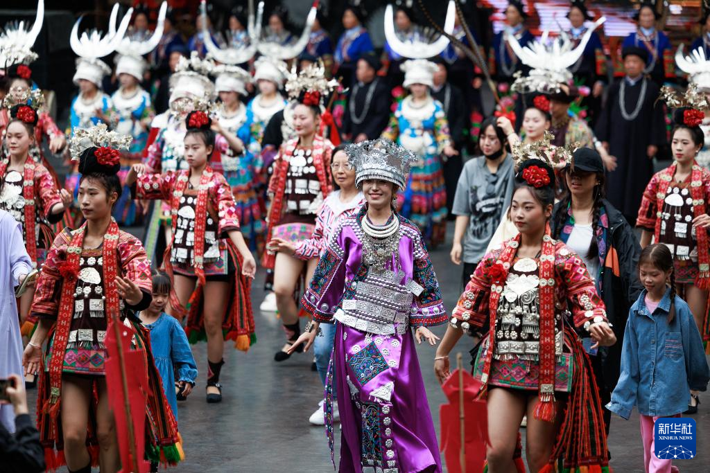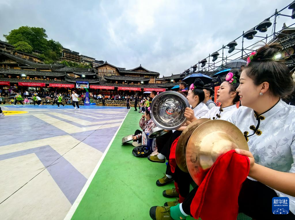 “五一”小长假来临之际,位于贵州省雷山县的世界最大苗寨——西江千户苗寨举行“姑妈篮球赛”、民族服饰文化展演、原生态歌舞表演等多项精彩活动,迎接游客到来。