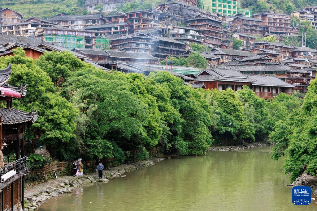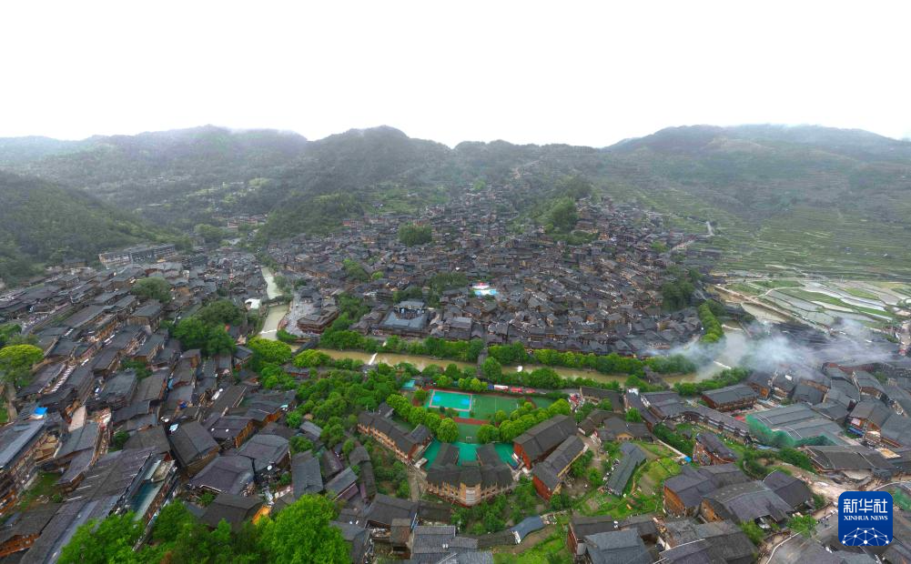 这是4月30日拍摄的西江千户苗寨全景(无人机照片)。
