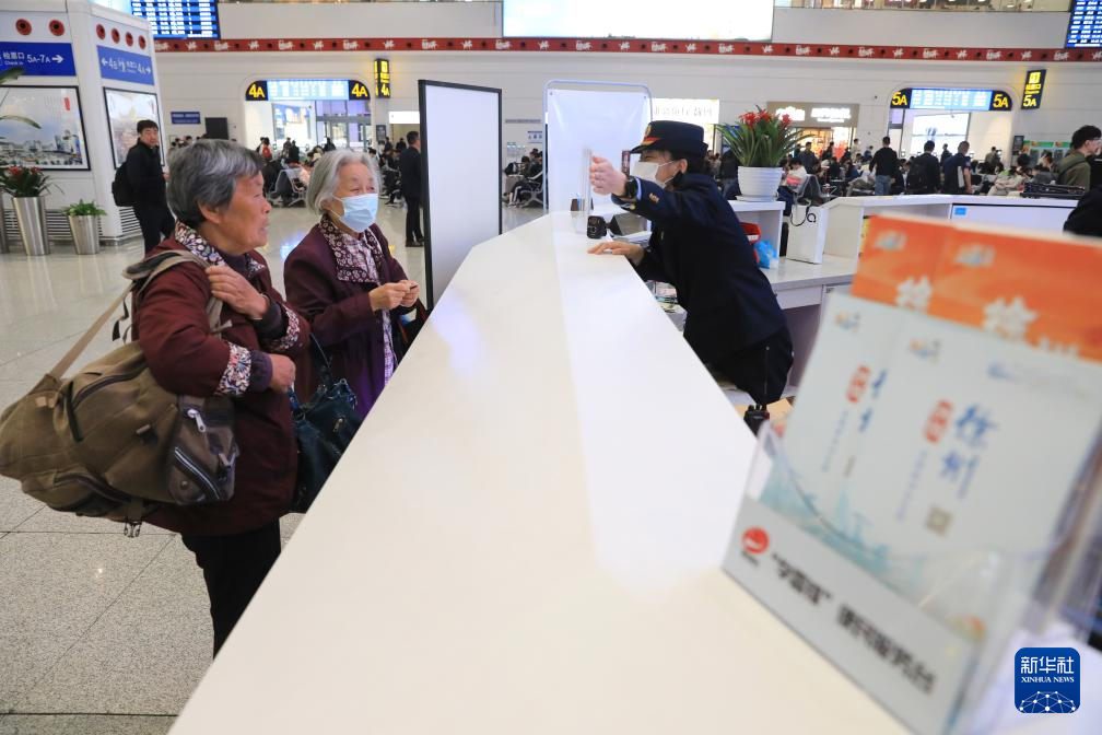 4月30日,旅客在徐州东站“顺心”雷锋服务台问询。