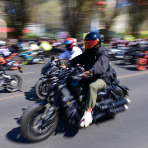 这是4月30日在新疆乌鲁木齐市举行的巡游活动上拍摄的摩托机车方阵。