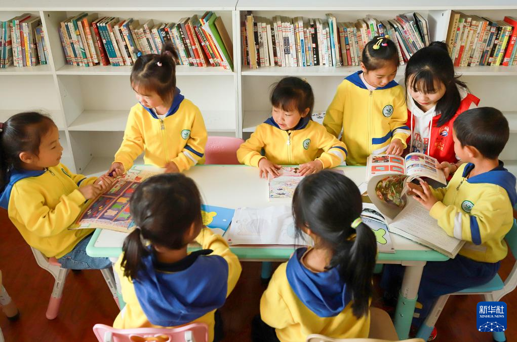 4月30日,志愿者带领小朋友在贵州省黔东南苗族侗族自治州岑巩县大有镇大坪同心社区阅读。