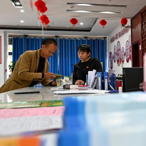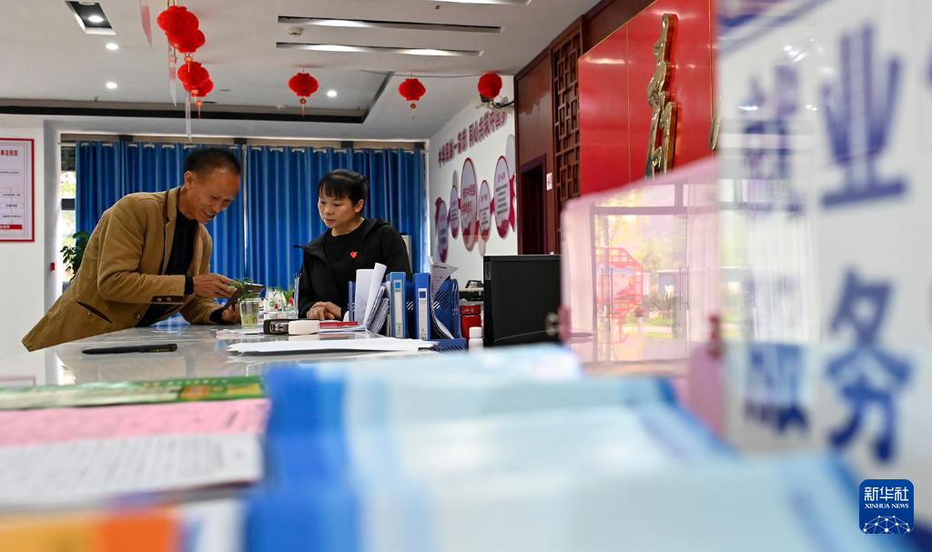 4月30日,工作人员在贵州省黔东南苗族侗族自治州岑巩县大有镇大坪同心社区为居民办理业务。