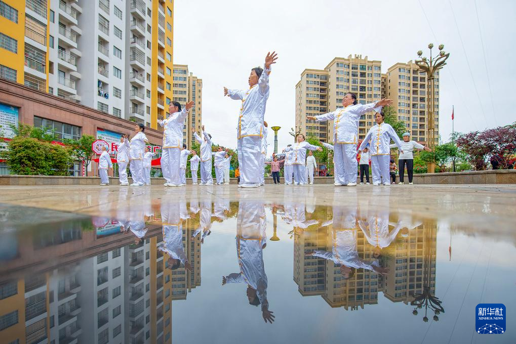 4月30日,社区居民在贵州省黔东南苗族侗族自治州岑巩县大有镇大坪同心社区锻炼身体。