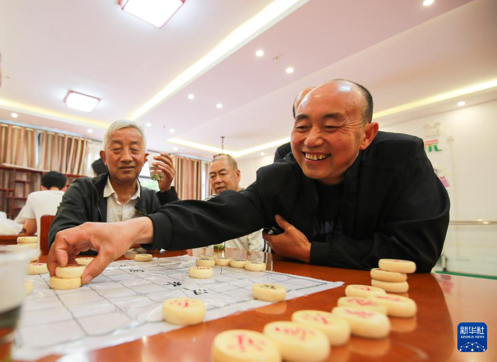 4月30日,社区居民在贵州省黔东南苗族侗族自治州岑巩县大有镇大坪同心社区下象棋。