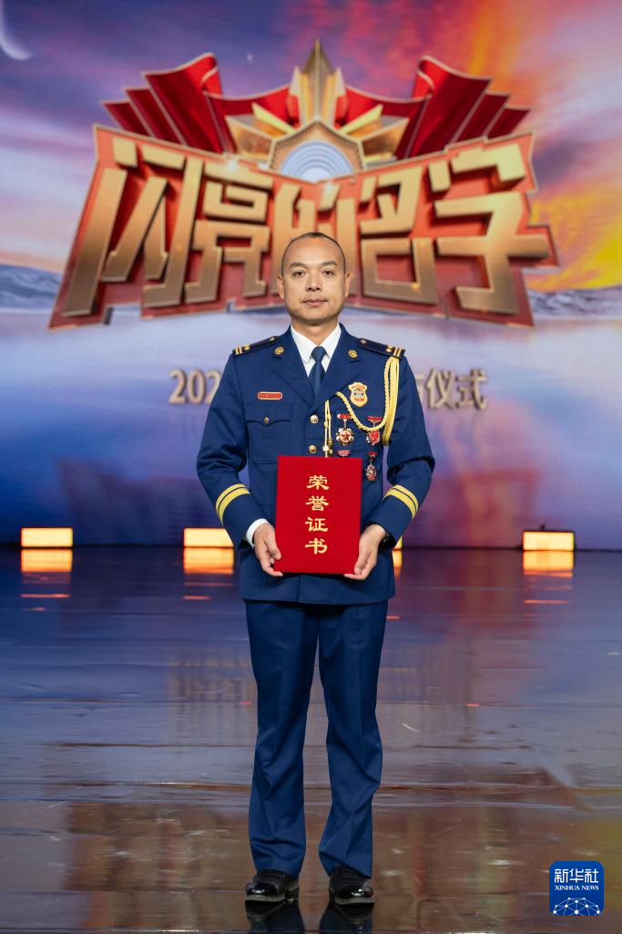 甘肃省临夏回族自治州消防救援支队支队长程恩虎在“最美职工”发布仪式上(4月24日摄)。