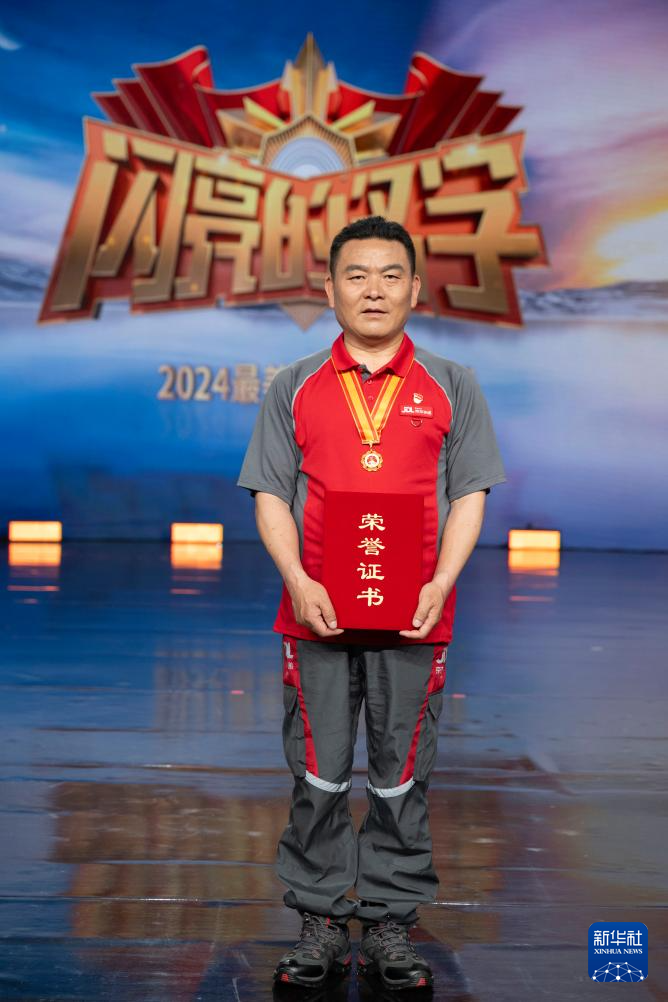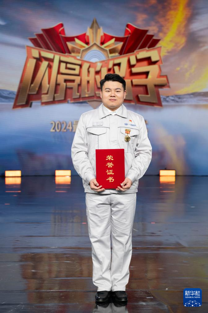一汽解放汽车有限公司商用车开发院试制部数控机床技能师时敬龙在“最美职工”发布仪式上(4月24日摄)。