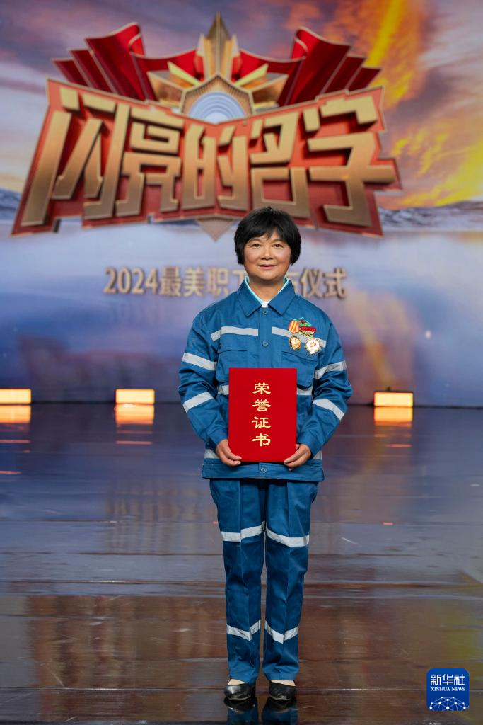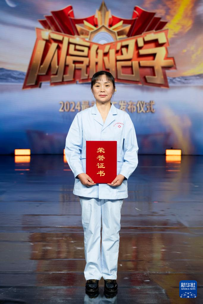 四川省巴中市通江县大椿养老康复中心养老护理员蒲玉在“最美职工”发布仪式上(4月24日摄)。