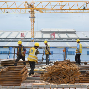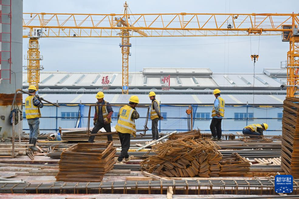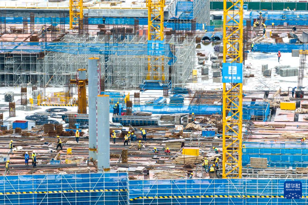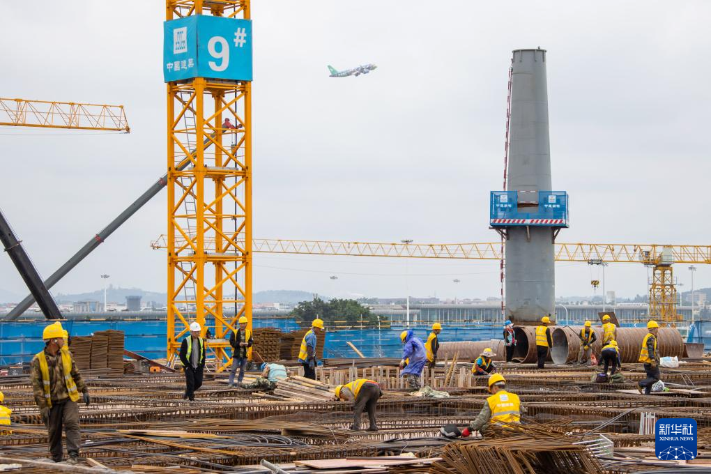 5月1日,建设者在福州长乐国际机场二期扩建工程项目T2航站区施工。