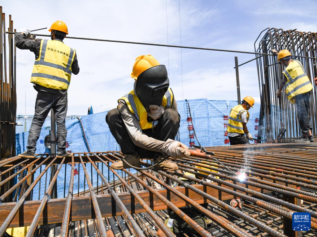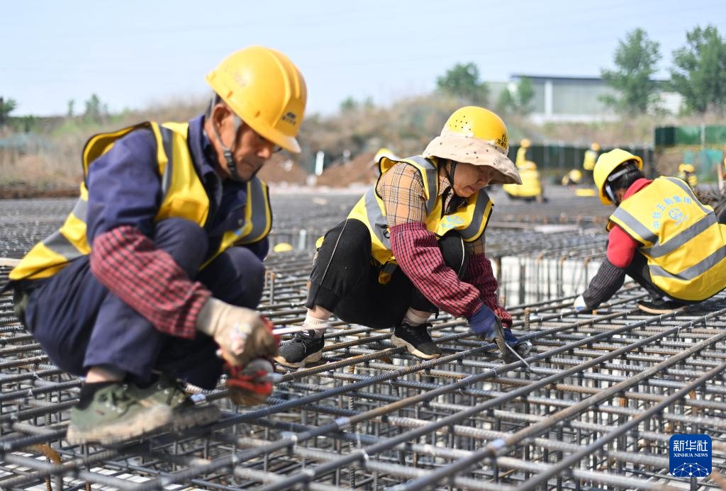 5月1日,工人在中铁置业集团承建的西安西咸新区一处安置小区建设项目施工。