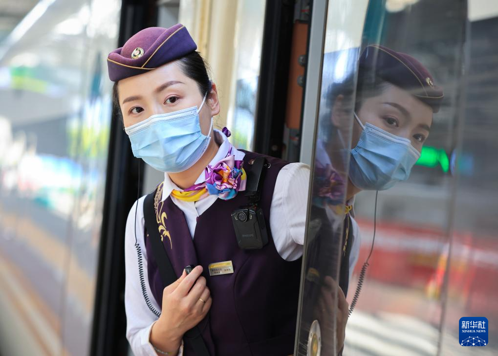 5月1日,在南京火车站,C3127次列车长在岗位上工作。