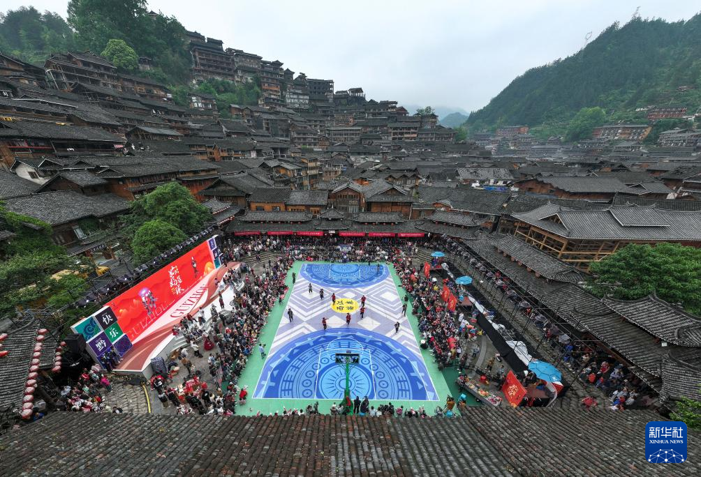 这是5月1日拍摄的贵州省第一届“姑妈”篮球邀请赛现场(无人机照片)。