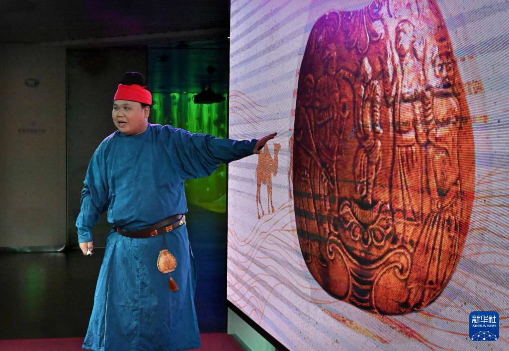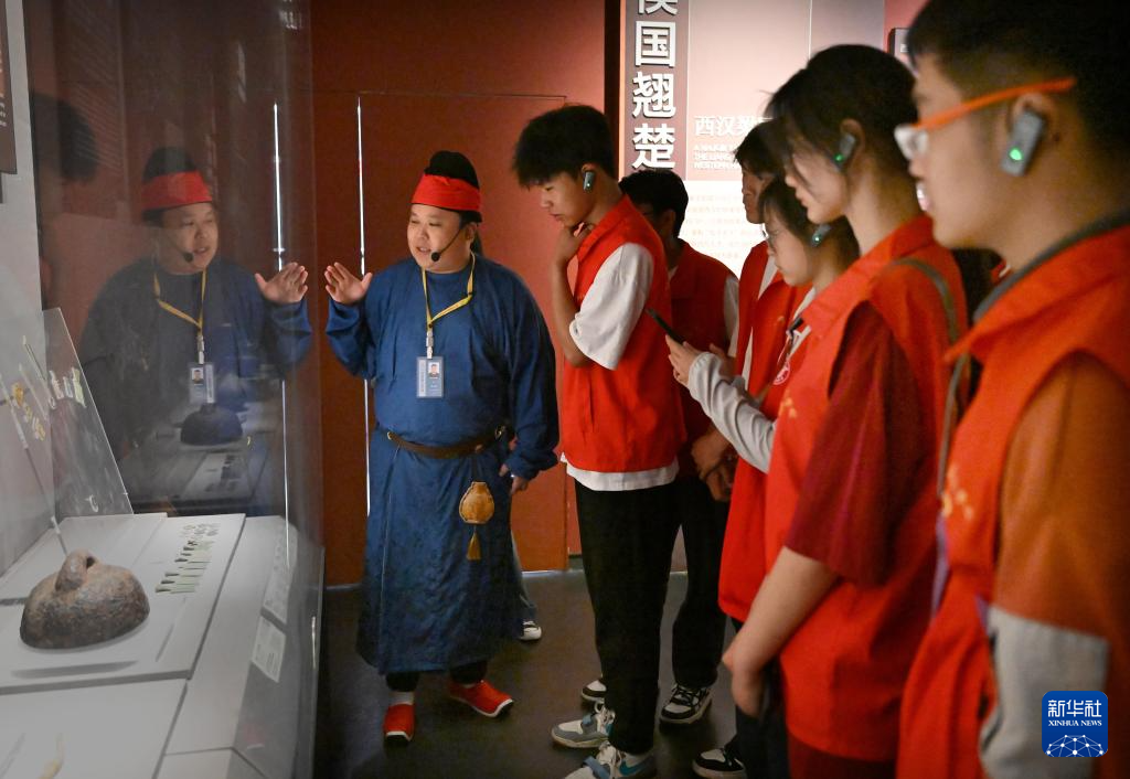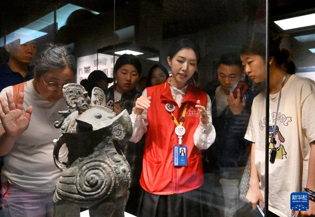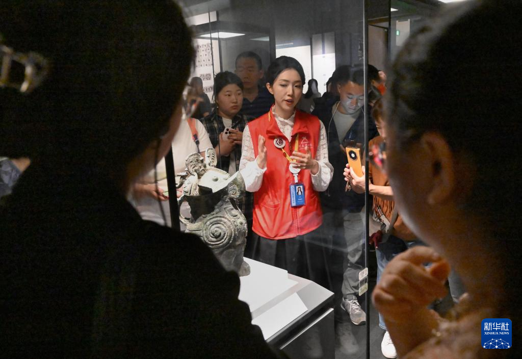 4月26日,河南博物院志愿者刘焱在馆内讲解。